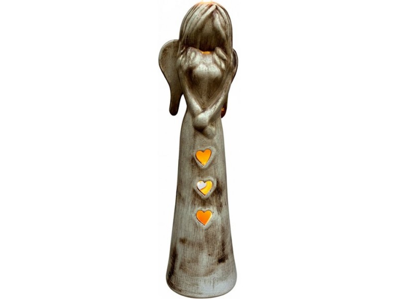 Keramická andělka přírodní,svítící.Kvalitní figura anděla na jednu čajovou svíčku,která se vkládá do těla andělky.Skrz vyřezávaná srdíčka na těle keramické andělky,prostupuje světlo ze zapálené svíce.Světlo působí opravdu magicky.V andělce je ukrytá síla a um keramika,který ji stvořil.A my bychom si přáli,aby naše energie vložena do andělky Vám byla k užitku,pokud ji dokážete využít.