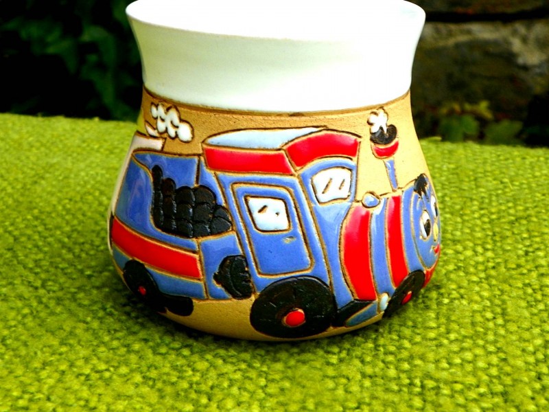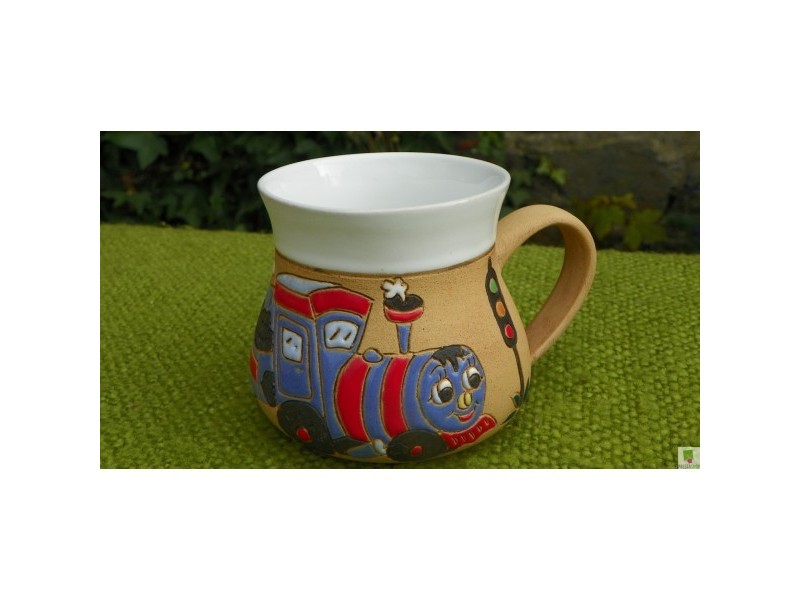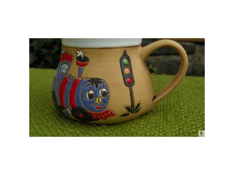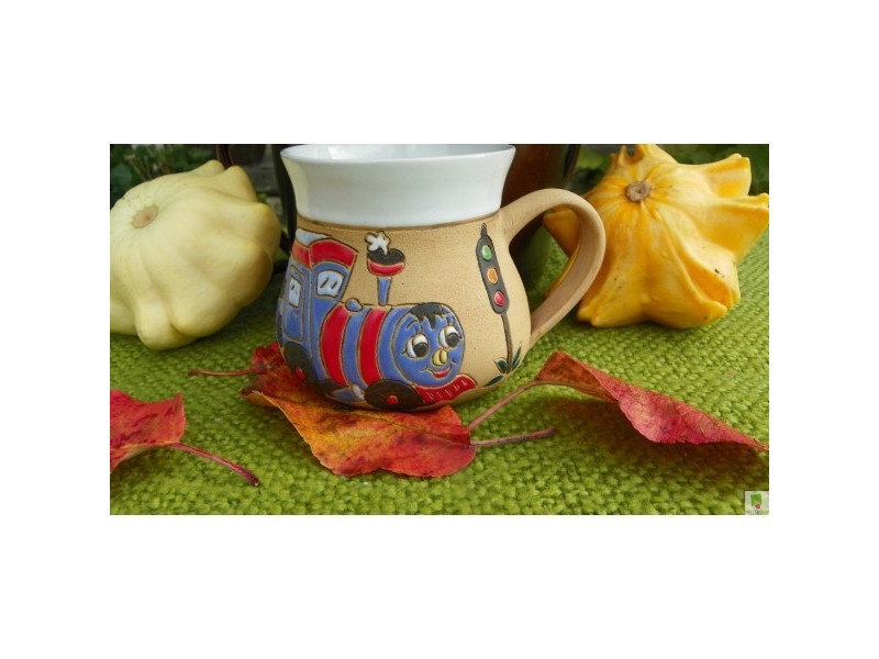 Dětský barevný hrnek s motivem vláčku,o objemu čtvrt litru.Podpořte fantazii a kreativitu vašich dětí.Je s podivem, kolik příběhů při pohledu na vláček si při snídani naše děti vymyslí. Máme barevné provedení různých dětských hrnků.Od českých keramiků-pro vaši ale hlavně radost dětí....