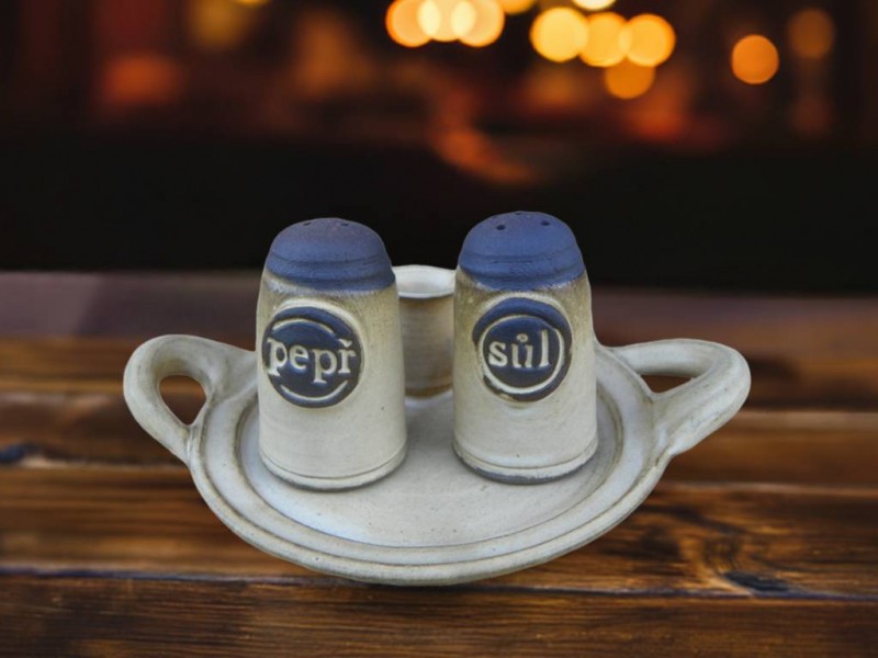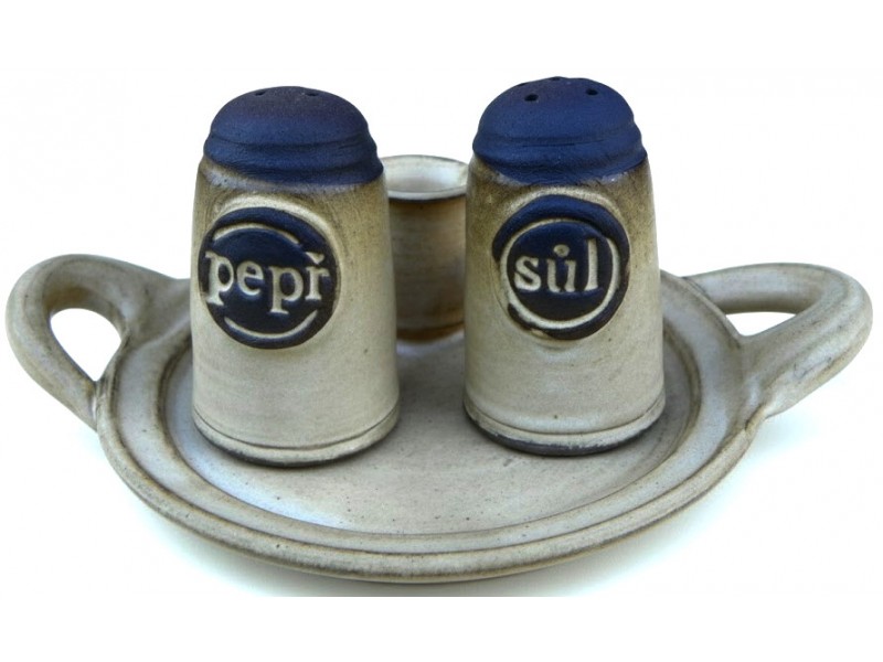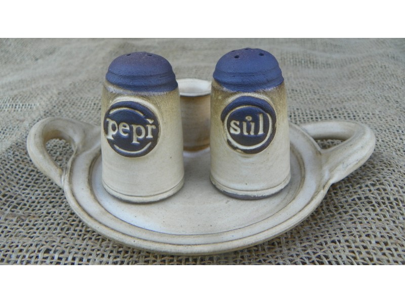 Solnička, pepřenka trojdílná, světlá keramika.