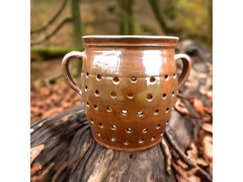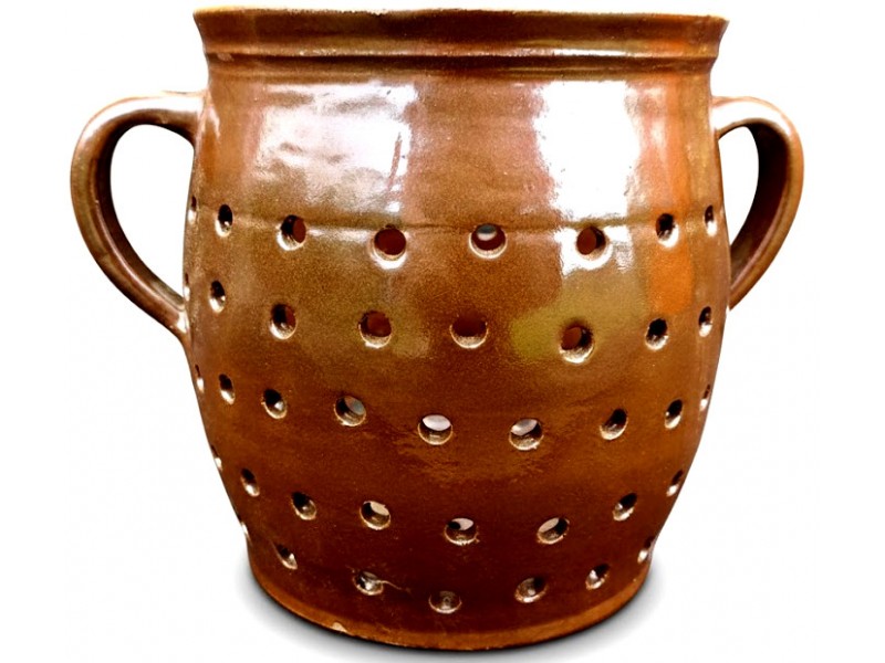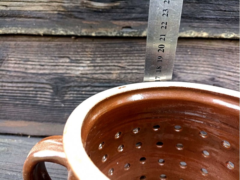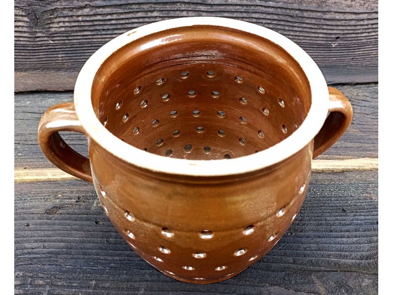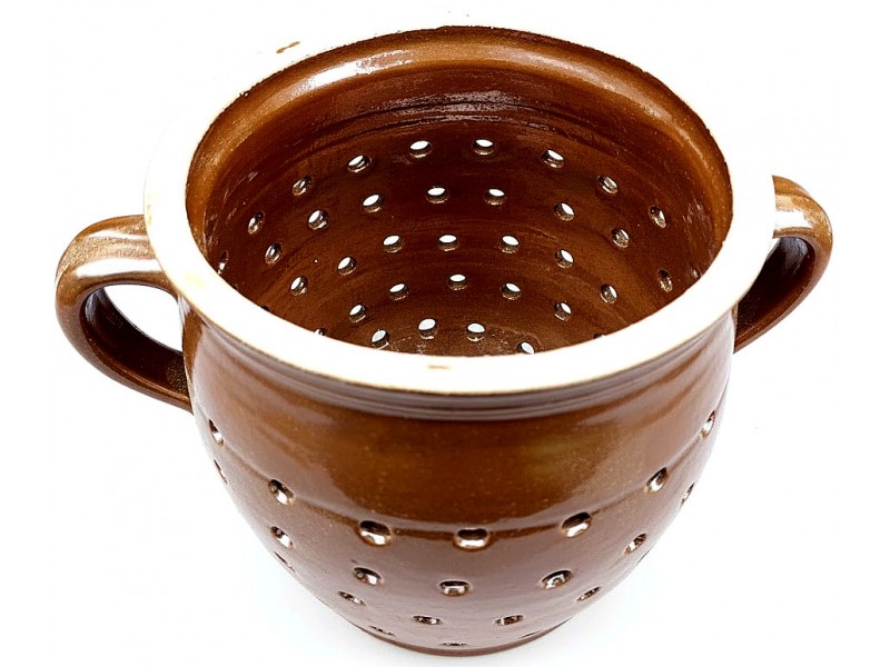 Tradiční cedník (hrachovec) je nepostradatelným pomocníkem v každé kuchyni. Je vyroben z kvalitní hnědé keramiky a má objem 1,5 litru, což je ideální velikost pro cezení polévek, vývarů, omáček nebo proplachování luštěnin a zeleniny. Jeho rustikální vzhled se bude skvěle hodit do každé kuchyně a dodá jí nádech venkovského stylu. Hnědá glazura zajišťuje dlouhou životnost a snadnou údržbu cedníku