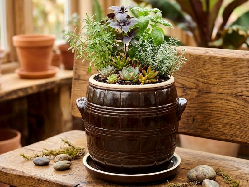 Květník chalupářský,keramický soudek-sádlák s dírkou a kvalitní kameninovou podmiskou,o objemu asi čtyři litry. Poměrně vysoký keramický kastrol-květináč, který sluší většině květin. Vytváří stabilní prostředí,a vhodné mikroklima pro živé rostliny. A hlavně, vaší fantazii se meze nekladou.Soudek zaujme svojí praktičností a estetickou hodnotou.