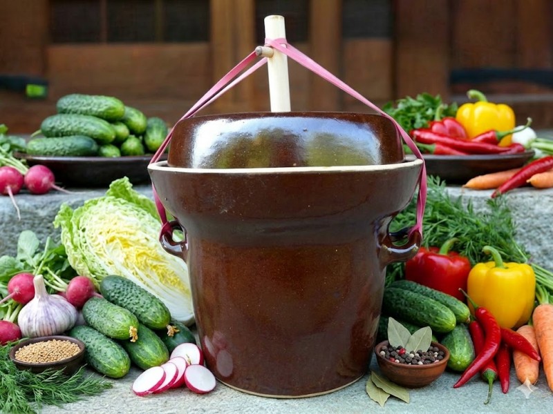 Dvoulitrová hnědá keramická nádoba s víkem a praktickými úchyty na výrobu pickles, je ideální pro přípravu tradičních nakládaných pickles okurek, zelí, kimči a dalších dobrot. Užijte si opravdovou chuť domácích fermentovaných specialit!