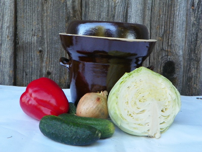 • Nádobu na kvašení – keramický hrnec na pickles.