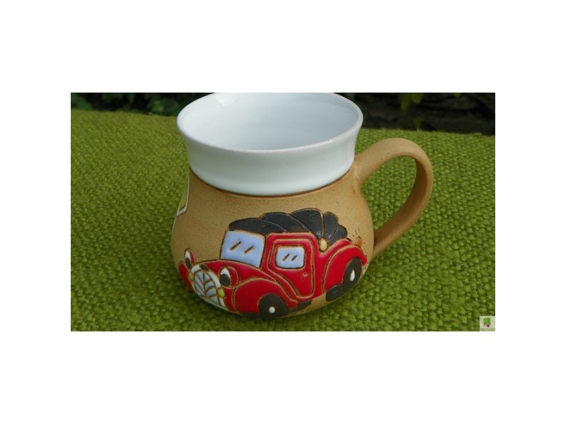 Hrnek autíčko osobní čtvrt litru. Od českých keramiků-pro vaši radost....