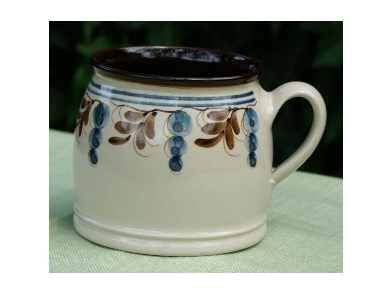 Hrnek . půl litru. Motiv víno. Jsou to hrnky,které do ruky padnou.Víte podle čeho poznáte dobrého keramika?No přece podle toho jak vytáhne ouško hrnečku.Ano, uši se tahají a pak přilepí....A náš staročeský hrnek není vyjímkou.Poctivost při výrobě keramických hrnků se vyplácí a je na nich znát.jsou praktické a krásné.