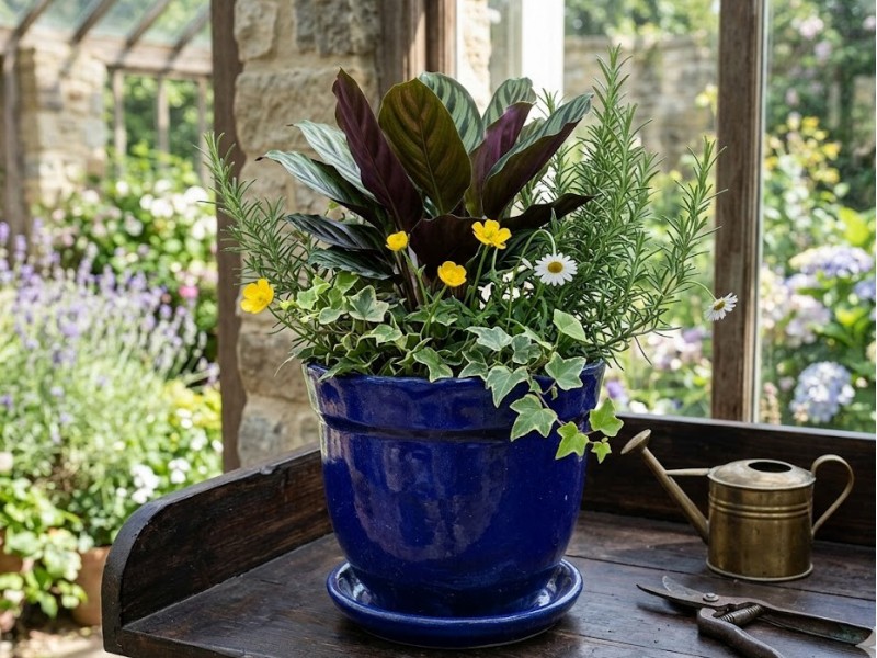 Květináč se skvěle hodí k dalším doplňkům v modré barvě, jako jsou keramické misky, vázy nebo dekorativní předměty.