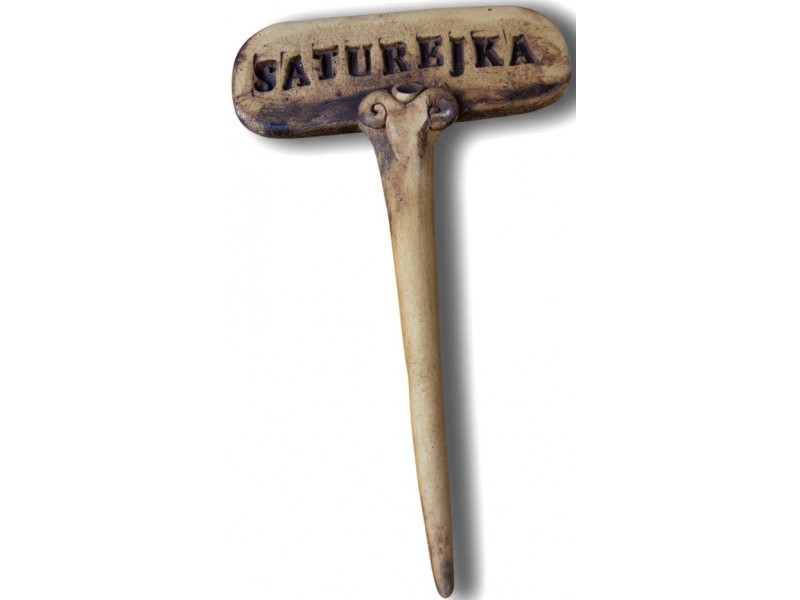 Už žádné tápání a hádání, co jste vlastně zasadili! S tímto keramickým zapichovátkem s nápisem "Saturejka" bude váš bylinkový záhon vždy perfektně označený a uspořádaný.
